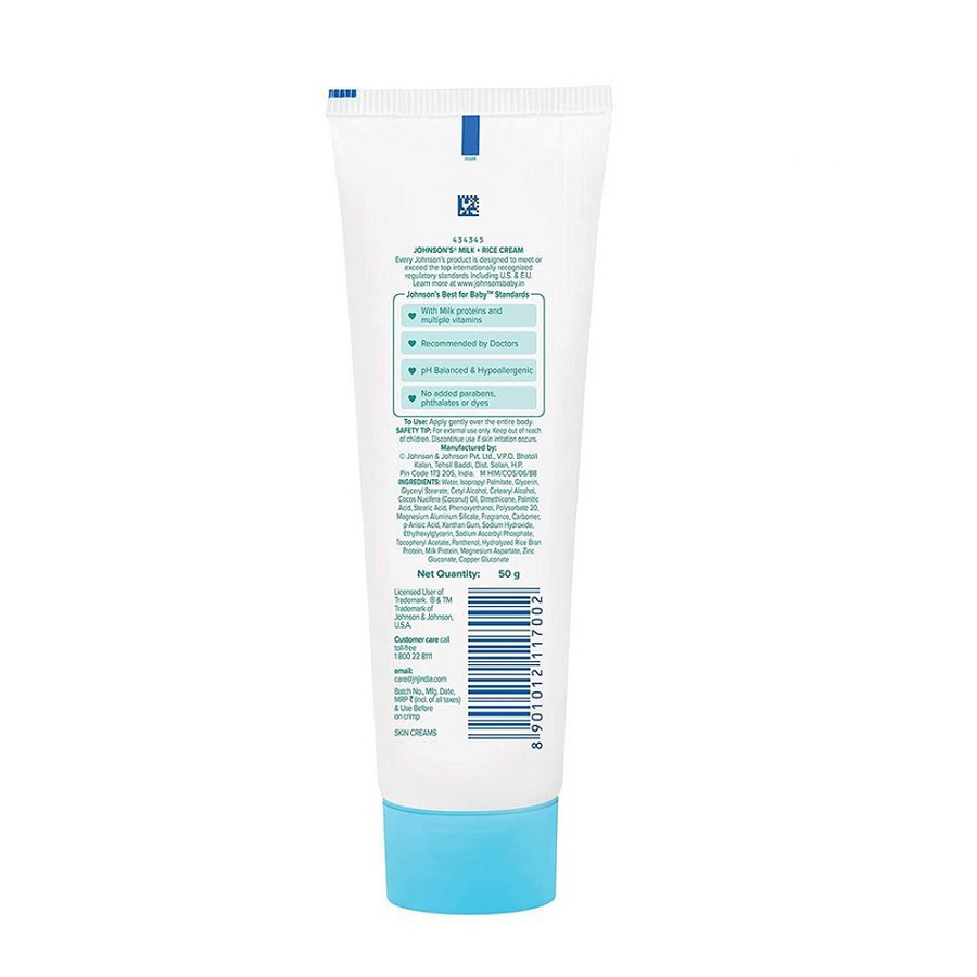2 out of 3 babies have dry skin. Baby skin is 3 times thinner than adult skin and hence loses moisture very fast. The NEW JOHNSON’S Baby Milk + rice Cream is 100% gentle and contains a unique combination of natural milk extracts & Vitamin E. With double nourishment, this product helps replenish moisture to leave skin feeling baby soft all day long. Contains rich emollients and added moisturizers which help to give skin an immediate moisture boost